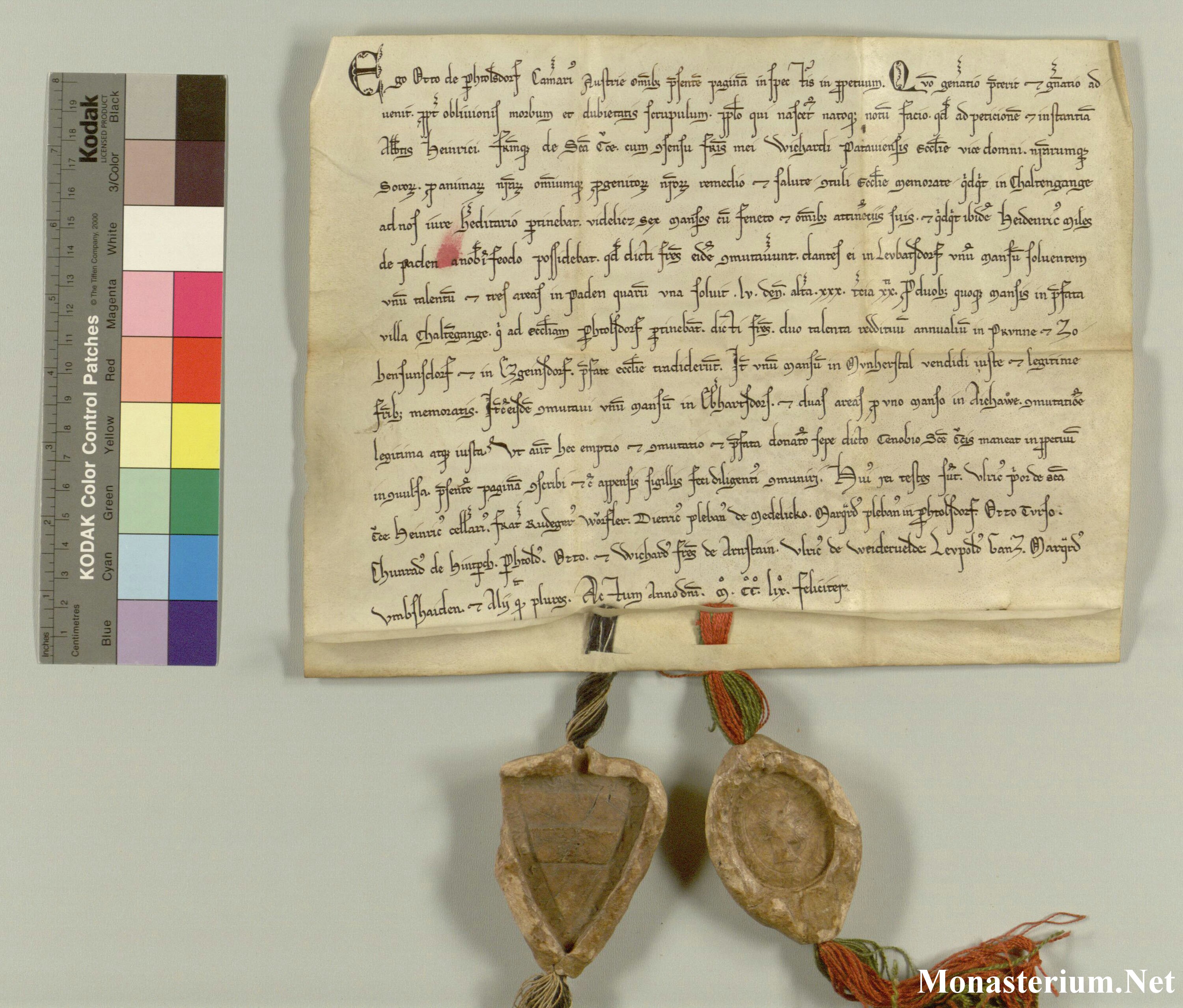 | Heiligenkreuz, Urkunde, 1259c | Source | Otto von Perchtoldsdorf, Kämmerer in Österreich, schenkte dem Stift Heiligenkreuz mit Zustimmung seines Bruders und seiner Schwestern sechs Mansen zu Kaltengang im Jahre 1259 (... quidquit in Chaltengange ad nos iure hereditario pertinebat, uidelicet sex mansos cum feneto et omnibus attinentiis suis ... Pro duobus quoque mansis in prefata villa Chaltengange ...). |