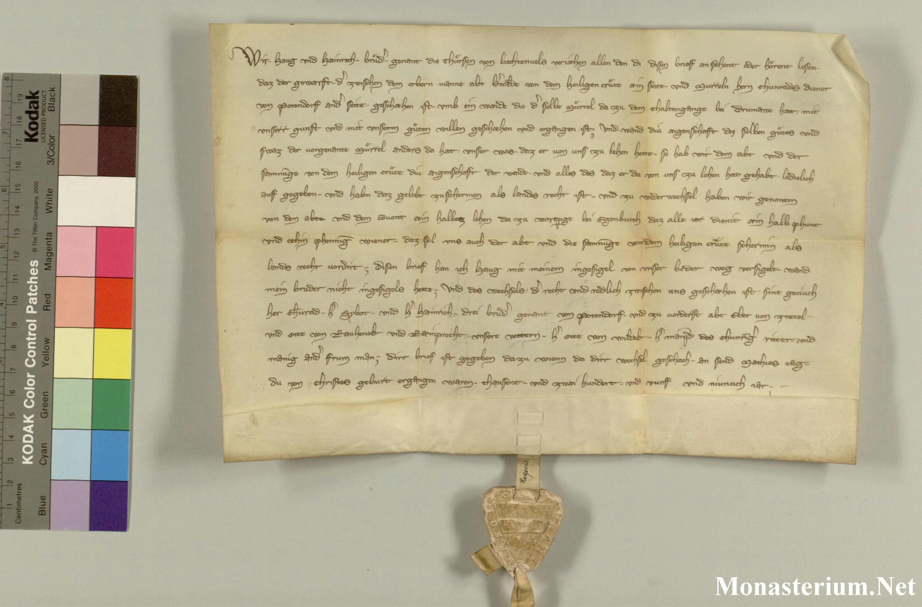 | Heiligenkreuz, Urkunde, 1258 | Source | Im Jahre 1258 schenkte Margarethe von Rohrau dem Stift Heiligenkreuz zu ihrem und ihres Gemahls Seelenheil eine Manse zu Kaltengang (contuli ecclesie sancte crucis unum mansum in Chaltengang pro anime mee et mariti mei omniumque progenitorum ac heredum meorum remedio et salute). |