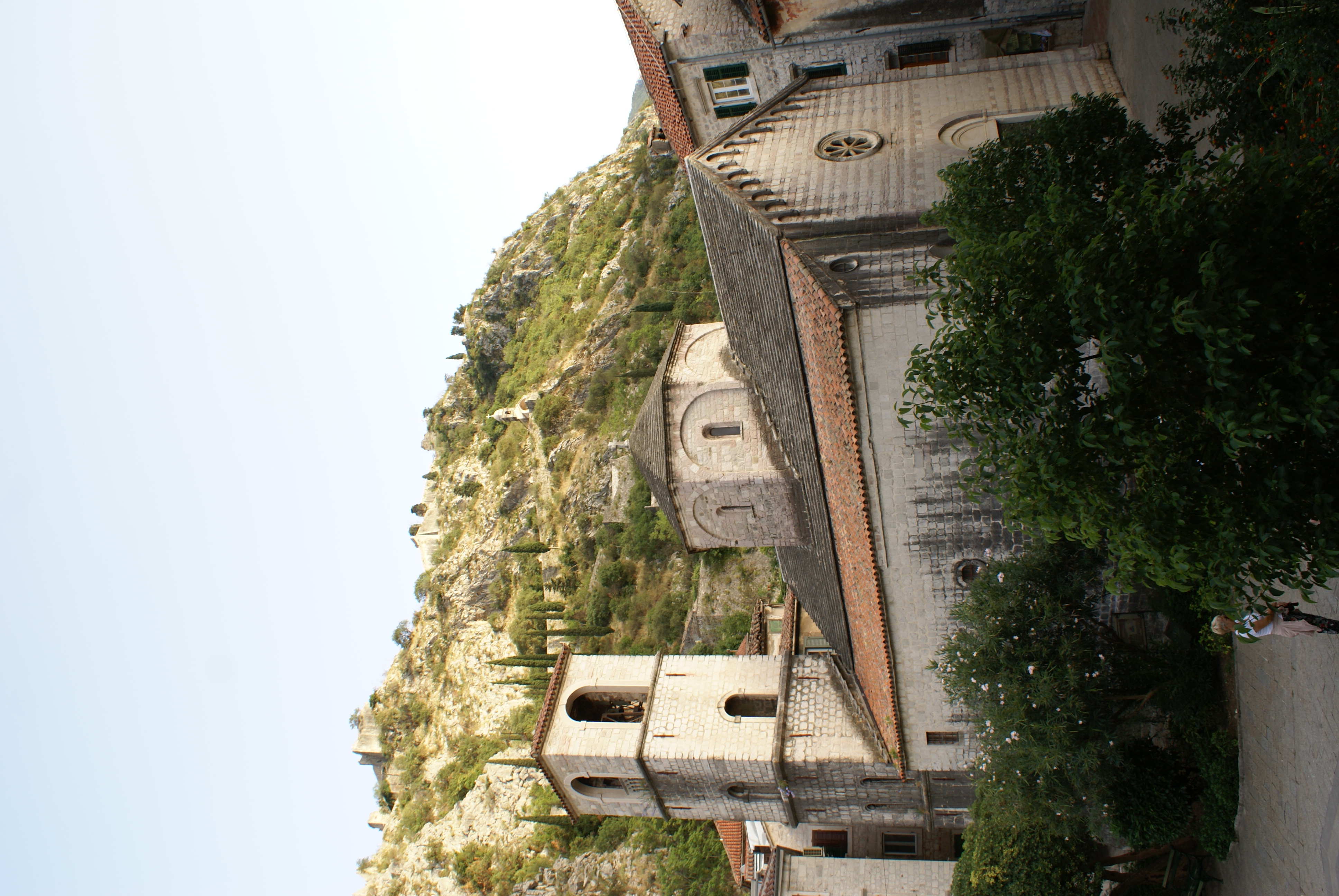The Church of St. Mary Collegiata is located in the old town of Kotor on the Northern side. The first building was erected in the 6th century and was a three nave basilica with vaulted side naves, three semicircular apses on the Eastern side and a synthronon. The church fits typically into the Early Christian basilica architecture in the Eastern Adriatic. It was remodelled in the early 9th century. In the time of the Serbian King Stefan Radoslav (reigned 1228-1234) and the Bishop of Kotor in 1221, a new Romanesque single-nave church with an apse on the Eastern side and a dome over the middle aisle was built in the area of the middle nave of the original basilica. In the 14th century the building was fresco painted. Also fragments of plaster were found (both from the first and the second building phase). There are entrances (portals) on the Western and Southern side. On the lintel on the Southern entrance is an inscription in Latin. In 1434 the Chapel of St. John the Baptist was built on the Northern side of the church. A bell tower, situated on the North-Eastern side of the church, was erected in 1771, according to the Latin inscription placed on its Southern side. Relics of the local Saint Ozana are kept in the Church.