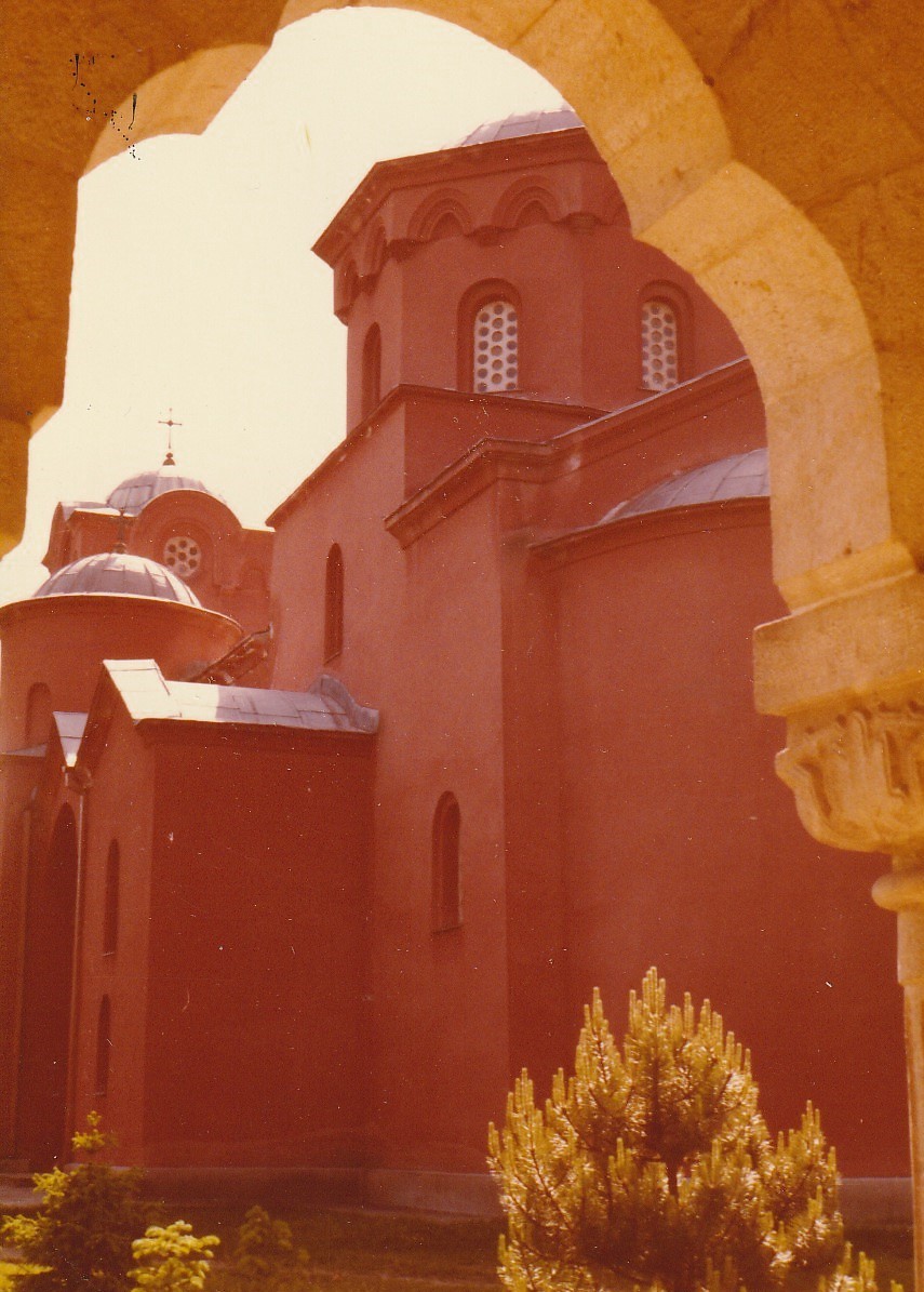 The ground plan of the church follows the pattern formed previously in the Church of the Holy Mother of God in the Studenica Monastery with some differences visible at the altar space, making it a model of all future buildings of the 13th century, of the so-called Raška monumental architecture. The church was built in several stages. Firstly, a single nave edifice was erected with three bays and a narthex with a parekklesion on both of its sides, semicircular apse and a dome. The present Western section was separated by a narthex wall until the end of the 13th century, when the wall was removed and the narthex was joined to the nave in a single space. The lateral arms of the transept were erected next to the central bay. After 1220 (but prior to the Great Council in 1221) the prothesis and the diaconicon were added in the altar. By 1230 a spacious exonarthex with a bell-tower was built on the Western side, which has a katechoumemion on the upper floor and a parakklesionon the upper floor of the tower. Another special feature of this church is its façade, which is painted in red. It is believed that the builders came both from Byzantium and the Adriatic. The church was fresco painted by artists from Byzantium. There are two layers of frescoes in the interior: the older one, created around 1220, belongs to the so-called Golden Age of Serbian painting and the younger one, from the beginning of the 14th century, belongs to the painting from the period of the Serbian King Stefan Uroš II Milutin (reigned 1282-1321), created under the influence of the so-called Palaiologan Renaissance style.