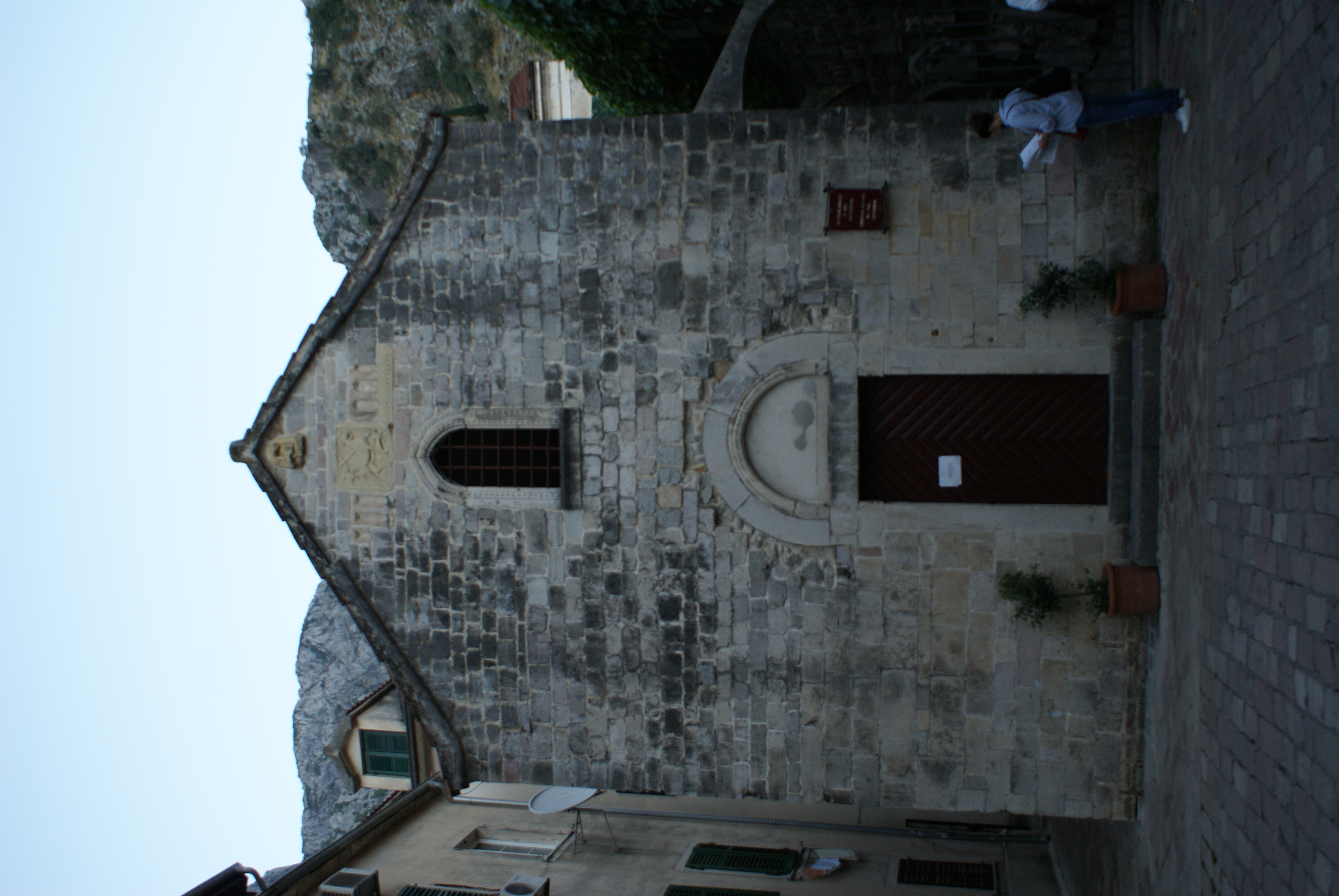 The Church of St. Archangel Michael is situated in the old town of Kotor. It is an Early Christian three-nave basilica with an apse on the Eastern side, which is semicircular on the inside and polygonal on the outside. It was probably built in the 6th century and equipped with liturgical furniture of the time, which was added in the 9th century. In the preserved apse are representations of Saints in fresco technique, of which only the lower halves have been preserved. In the first half of the 13th century the original church was demolished and a new single nave edifice was built in Romanesque-Gothic style dedicated to St. Archangel Michael. In the 15th century Lovro Dobričević painted the frescos in the church. The abbot of the church called Peter is mentioned in 1166 in a document regarding the consecration of the altar of the new Romanesque cathedral of St. Tryphon. In the 19th century the church became a military warehouse and is today a museum (lapidarium).