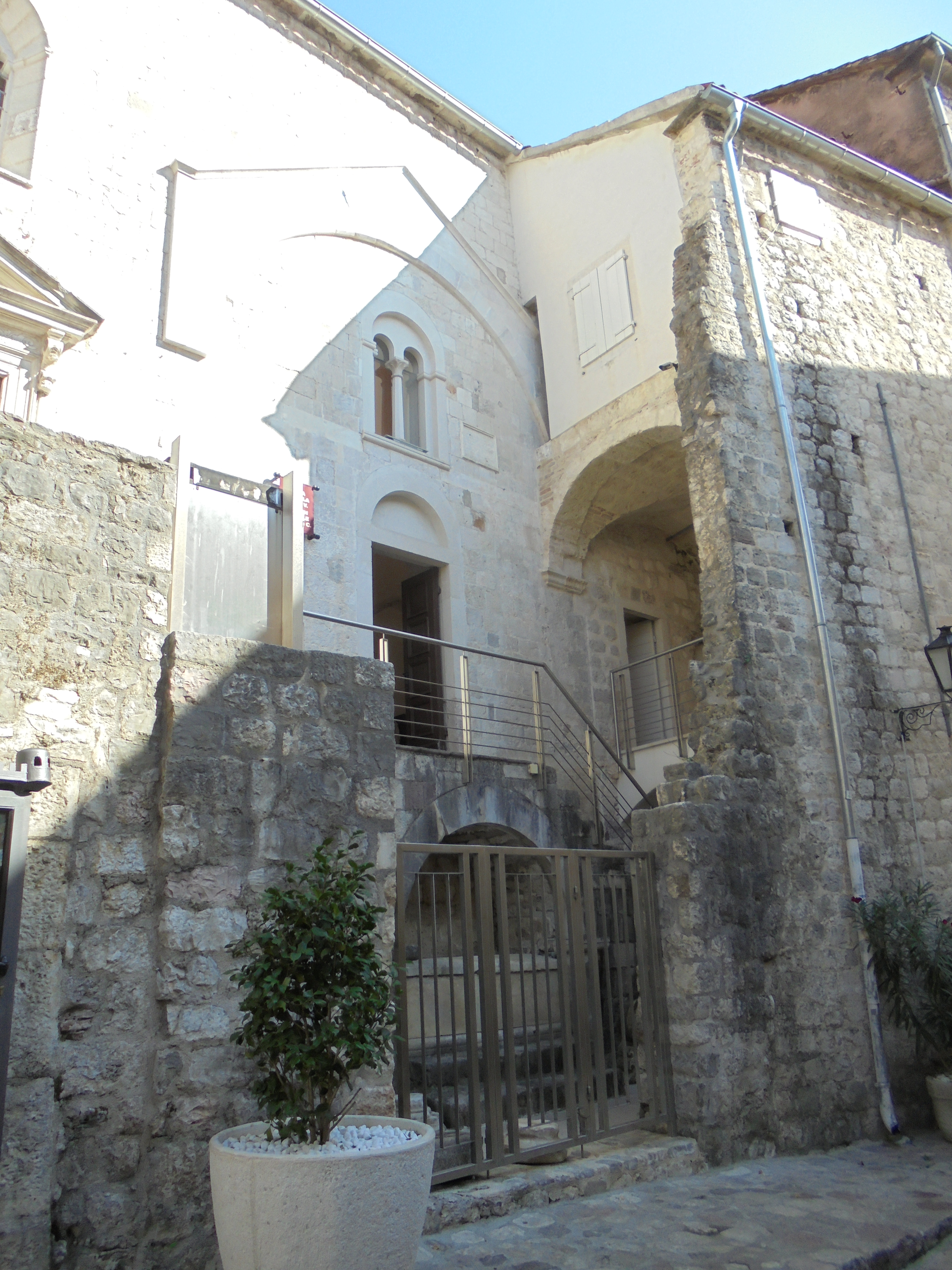 The Church of St. Paul is situated in the city of Kotor. It was built by the citizen of Kotor Pavle Bari in 1263, as stated in the inscription on the façade, also mentioning the Serbian King Stefan Uroš I (reigned 1243-1276) and Bishop Marco of Kotor. The church was remodeled in the 16th century and became a Dominican Monastery. It is a single nave edifice with three bays with groin vaults and a semicircular apse. Today remains of the church of the 13th century are visible beneath the glass floor, and in front of the building is a sarcophagus, where its ktetor was buried.