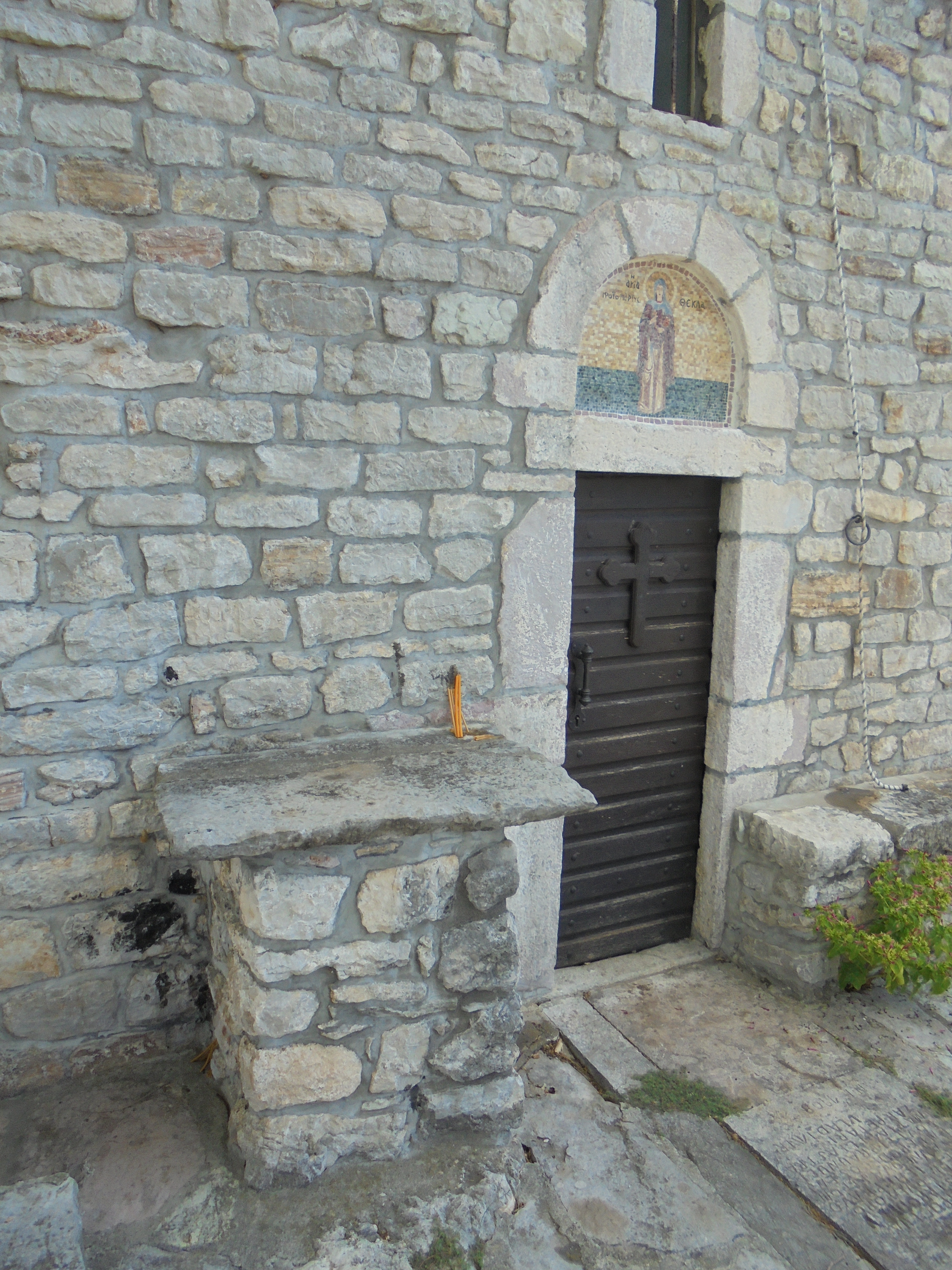 The Church of St. Thecla is situated in Spič to the West of Sutomore. It is a single nave edifice from the 13th century with an apse and a bell-tower, which was added at a later date. The church has two altars: one is in the apse in the East, while a second is positioned outside of the church at the Western wall to the left of the entrance. Both are used by the Orthodox and Roman Catholics alike. Around the church is a joint Orthodox and Catholic cemetery. The church was renewed in 2005.