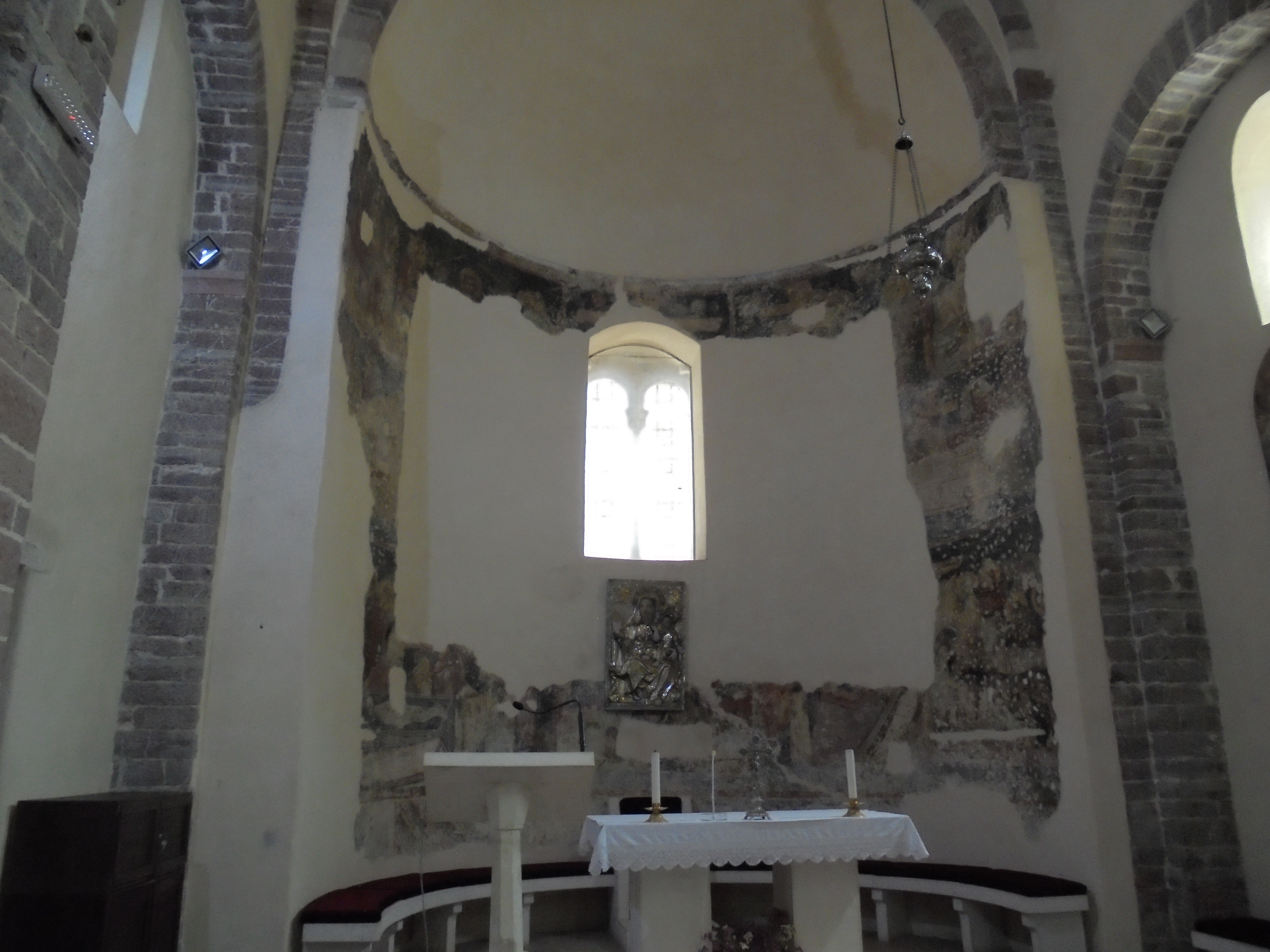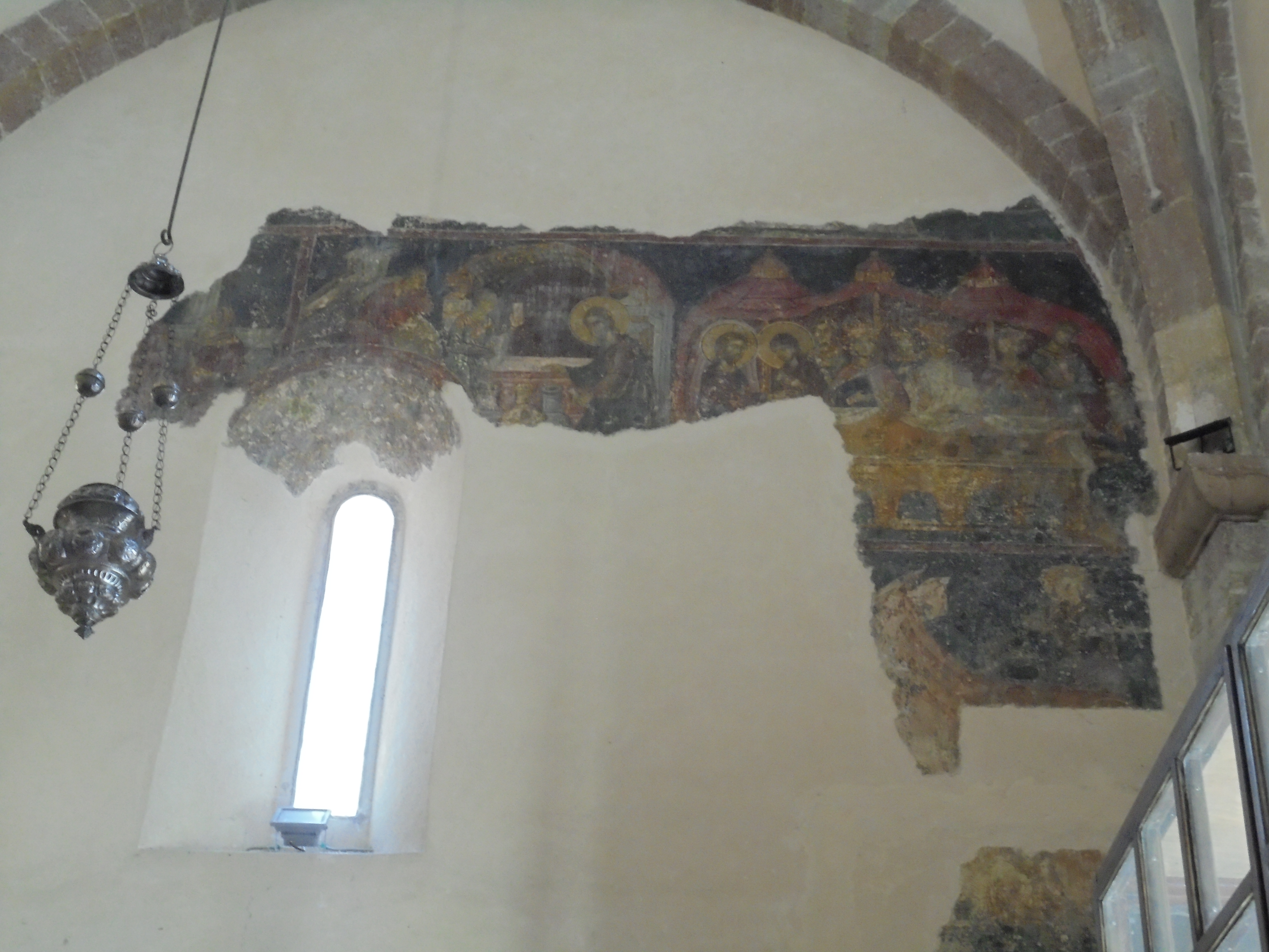 After the devastating earthquakes in 1979 the Church of St. Mary (Collegiata) in Kotor was left damaged. Restoration works followed soon after, when frescoes were found in the dome, the apse, on the Southern and Western walls of the Western bay, indicating the early 14th century in terms of style and iconography. A fresco of Christ Pantocrator is partially preserved in the dome, the Crucifixion is partially preserved in the apse, while the best preserved scene is the one that begins the cycle of Christ's sufferings, which is Christ before Pilate, etc.