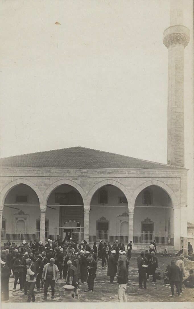 The Sultan Murat Mosque was built by the Ottoman Sultan Murat II (reigned 1421-1451) in 1436. It is the oldest surviving mosque in Skopje and was restored several times (for example in the 18th century and in 1912). The German photograph from 1916 shows the entrance to the mosque in the North.