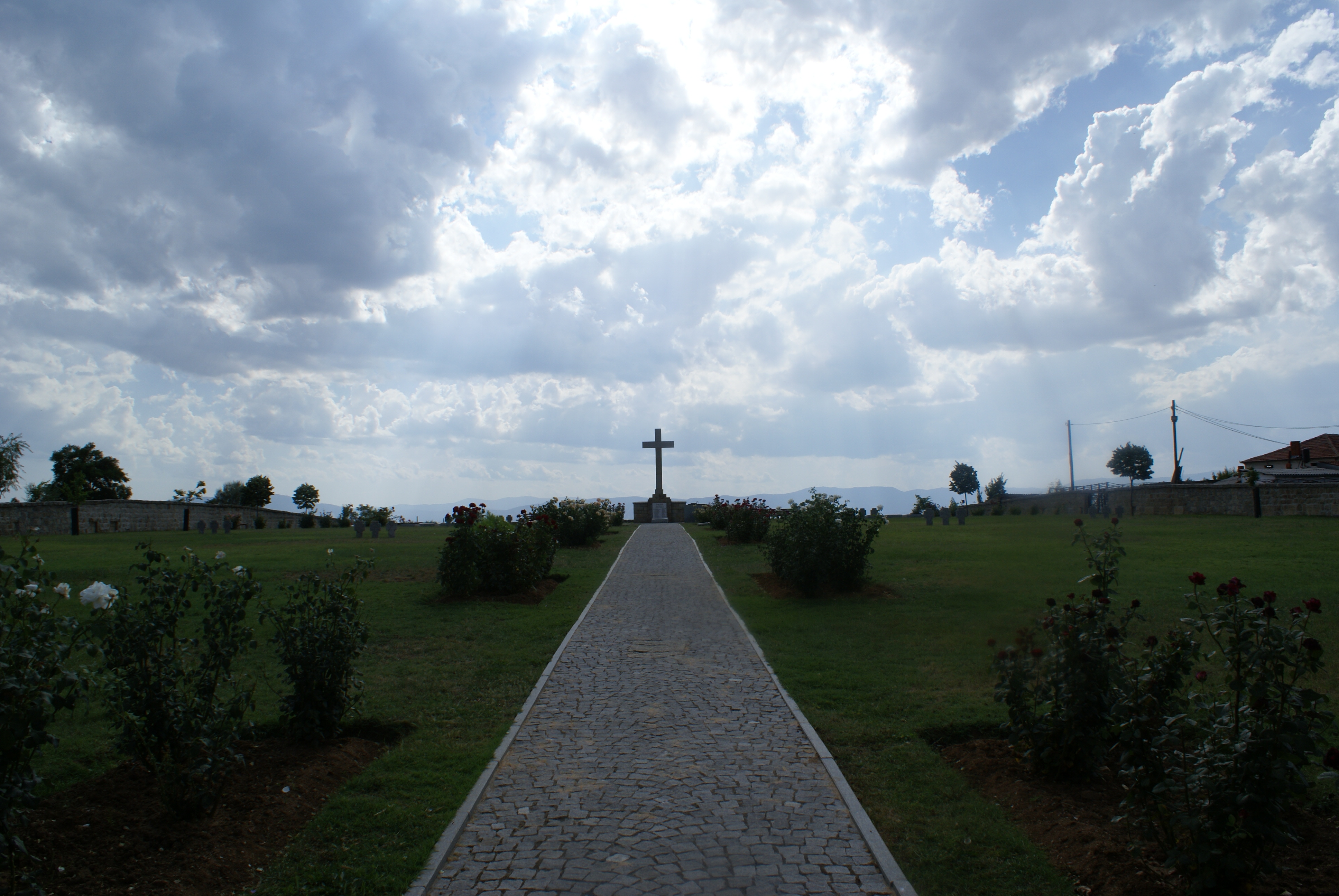 1,683 German and 146 war dead from Austria, Bulgaria, Hungary, Romania, Serbia and Turkey as well as eight from Albania are buried in Prilep. During the Second World War, around 50 dead German soldiers found their final resting place here. As part of the restoration of the cemetery from 2003, the cemeteries from the First World War were labelled with groups of symbolic crosses made of granite. The names of all war dead of the First World War known to the Volksbund Deutsche Kriegsgräberfürsorge were engraved in granite stones. In a part of the cemetery that had not been used until then, war dead from the Second World War from Macedonia were buried in individual graves and provided with grave crosses with the names and dates of those buried. Groups of symbolic crosses made of white marble and a name plaque mark the graves of the Bulgarian war dead. A separate memorial plaque commemorates the Hungarian soldiers.