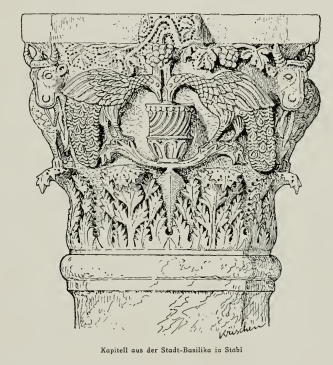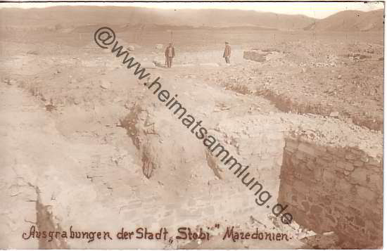 Paul Clemen describes the archaeological endeavour by the German Army as follows: "Nur eine planmäßige größere Grabung ist während der Zeit der militärischen Besetzung unternommen worden. Im Gebiete der antiken Stadt Stobi hatten deutsche Offiziere von dem wichtigen Etappenort Gradsko aus Forschungen begonnen. Sie führten zur Entdeckung von drei Basiliken, deren eine, außerhalb der antiken Stadt in der Nähe von Palikura gelegen, fast ganz freigelegt, aufgeräumt und, infolge des lebhaften Interesses, das auch der Oberbefehlshaber, General-Feldmarschall von Mackensen, der Arbeit entgegenbrachte, soweit das unter solchen Verhältnissen möglich war, gegen Beschädigungen geschützt wurde. Die Fortsetzung der gleichfalls begonnenen Freilegung der beiden anderen Kirchen, die in der antiken Stadt gelegen sind, wurde von den bulgarischen militärischen Stellen gehindert. Als ich im Sommer 1917 nach Stobi kam, ergab sich mir, daß die auf halbem Wege steckengebliebene Arbeit kein wissenschaftliches Ergebnis zeitigen konnte, dagegen bei der unmittelbaren Nähe des großen Etappenortes die aufgedeckten Reste sicherer Zerstörung aussetzte, ehe sie wissenschaftlich verwertet werden konnten. Auf meine Verwendung bei Herrn Professor Filow fand sich die Direktion des Nationalmuseums in Sofia bereit, die Erlaubnis zur Aufdeckung bei den bulgarischen militärischen Stellen zu erwirken und diese zu vollenden, wozu die Landeskundliche Kommission Dr. Krischen zur Verfügung stellen konnte. Herr Krischen hat dann 1918, nachdem er zuvor schon die in der deutschen Etappenkommandantur aufbewahrten Fundstücke genau bearbeitet hatte, mit Unterstützung der bulgarischen Kommandantur in Gradsko, die eine Anzahl Soldaten zur Verfügung stellte, zunächst die große Begräbniskirche freigelegt, die wohl noch dem fünften Jahrhundert angehört. Die eingeschossige Basilika hatte einen prächtigen Mosaikboden, einen geometrisch geteilten und bis auf einige Felder mit Tierdarstellungen auch geometrisch geschmückten Teppich. Bei seinem ungünstigen Erhaltungszustande war an ein Fortschaffen oder an dauernde Erhaltung leider nicht zu denken. Doch sorgte militärische Bewachung für einstweiligen Schutz, bis eine genaue Aufnahme in großem Maßstab fertiggestellt war. Dann wurde in der großen Basilika inmitten der Stadt, die wohl zweigeschossig war wie S. Demetrius in Saloniki, weitergegraben und dort eine Fülle von Trümmern sehr schöner Marmorschranken mit durchbrochener Arbeit, Brocken von Stuckornamentik und Freskomalereien, Glasmosaiken und namentlich das oben S. 159 abgebildete prachtvolle Kapitell entdeckt. Alle diese fanden einstweilen in der deutschen Etappenkammandantur Gradsko Unterkunft, so daß hier allmählich ein kleines Museum entstand. Leider sind die zum Teil recht wertvollen Gegenstände dort vergebens geborgen worden und wahrscheinlich in der allgemeinen Katastrophe mit untergegangen."