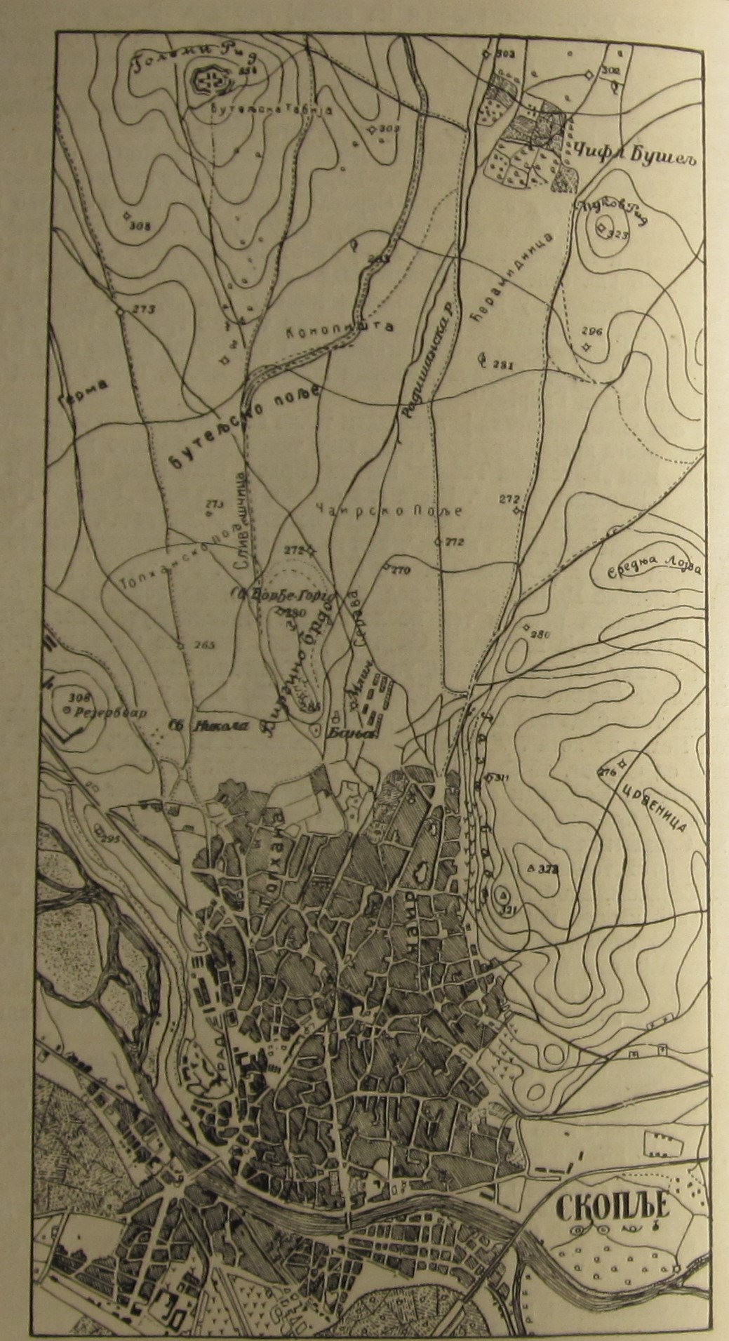 In 1348 the Serbian Emperor Stefan Uroš IV Dušan (reigned 1331-1355) issued a charter for the Cell of Saint Sava (ca. 1175-1236) in Karyes on the Holy Mount Athos concerning the village of Kosorići, when he stopped at the place called Čahra near Skopje (Sego radi napisa se sii hrisovulь vь ōkrьstnoi st᾿raně grada Skopia, stoještu carstvu mi na Čahri). The charter of Stefan Dušan for the Monastery of the Holy Archangels Michael and Gabriel near Prizren dated to 1347/48 refers to the place of Čahra in the border delimitation of the village of Klьčevišta (A megja Klьčevištemь: do visa us poljanu, megju Pьsi Dolь i megju hlьmь tere pravo na kolovozь, i koi putь ide ōt Banjanь pravo mimo selo Slivovikь, kako izlazi kolnikь na kamenikь na brьdo, i ōt tudu pravo u planinu putemь obь druge strane do crьkvišta pri Kalopetrově lozě, a gorě uz dělь u planinu; a ōt Skopija megja, po srědě Dobroga Dola, u putь u prěky koi grede ōt Čahra, i do mramora putemь koi grede uz Golihovo pravo u Banjane, ōt toga puti pravo u visь, koi ide megju Banjane i megju Klьčevišta). Čahra was not a village in medieval times, but a place (topographical entity), which is most probably to be localised in "Čairsko Polje" (cf. the map by Radoslav M. Grujić), which is today Skopje's Northern urban district of Čair.